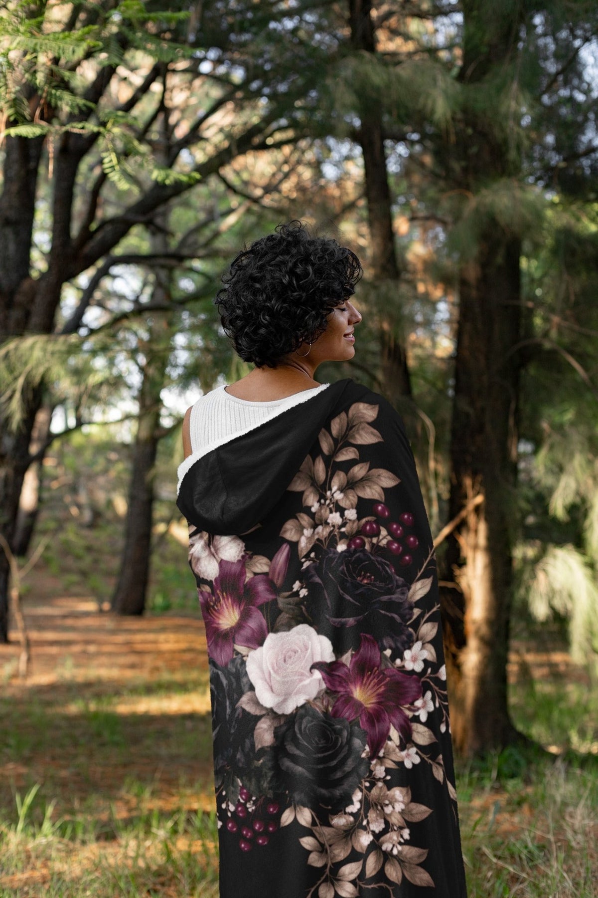 Perfect for curling up with a book, relaxing on cold evenings, or adding dark botanical style to your space. This hooded blanket surrounds you with cozy comfort and enchanted garden energy.