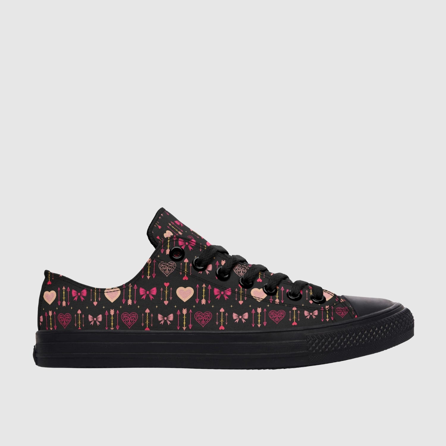 These Goth Cupid Low-Top Sneakers put a dark twist on Valentine’s Day with an all-over heart and arrow design. Lightweight and versatile, they’re made for everyday wear while still adding a subtle gothic statement to your outfit.