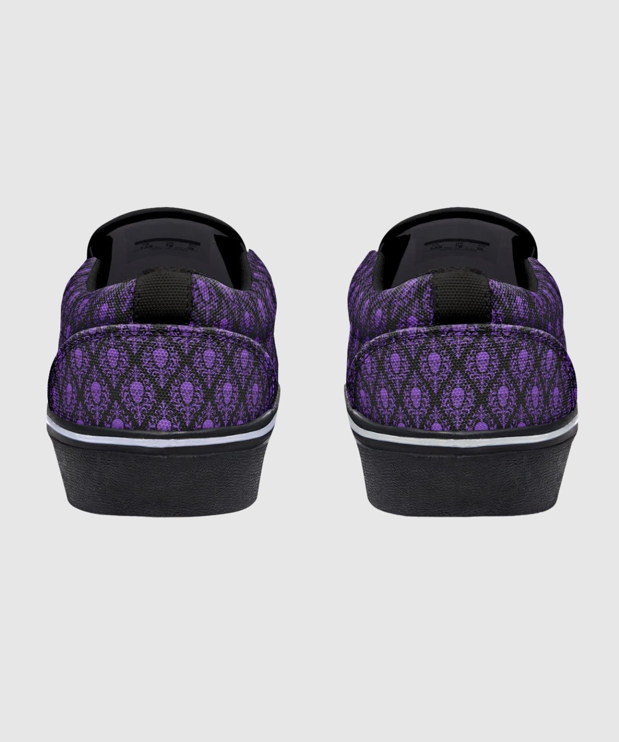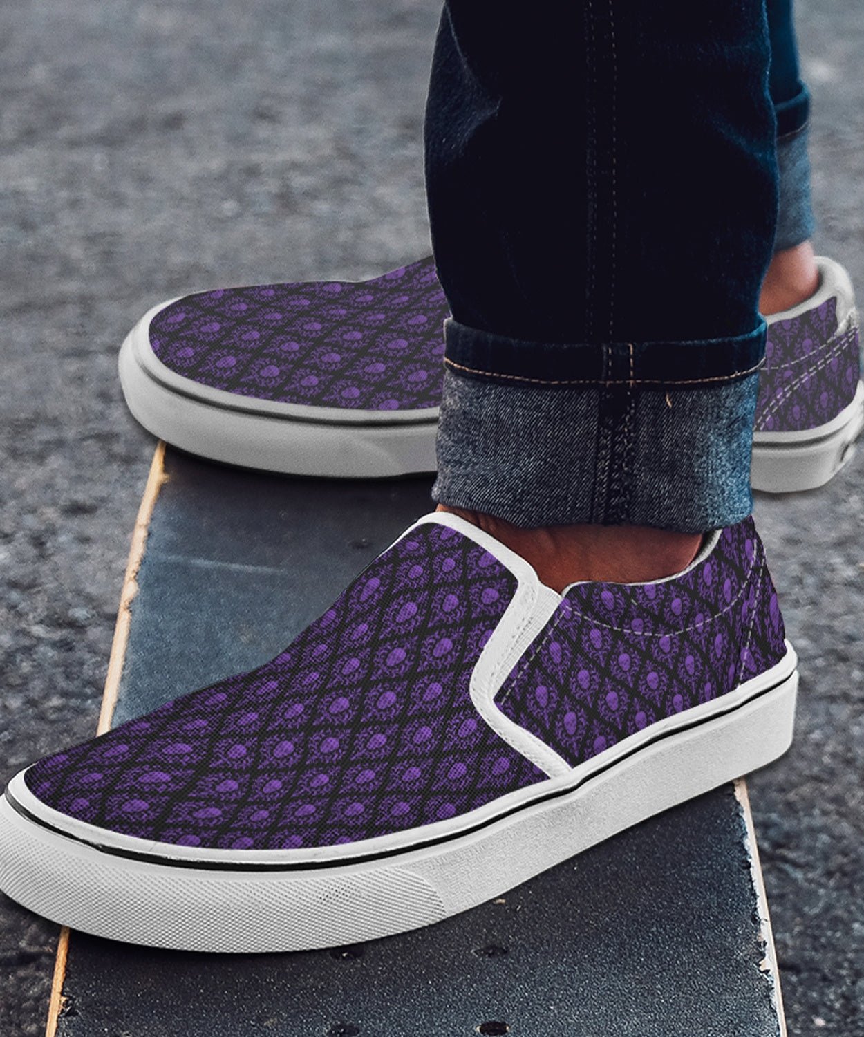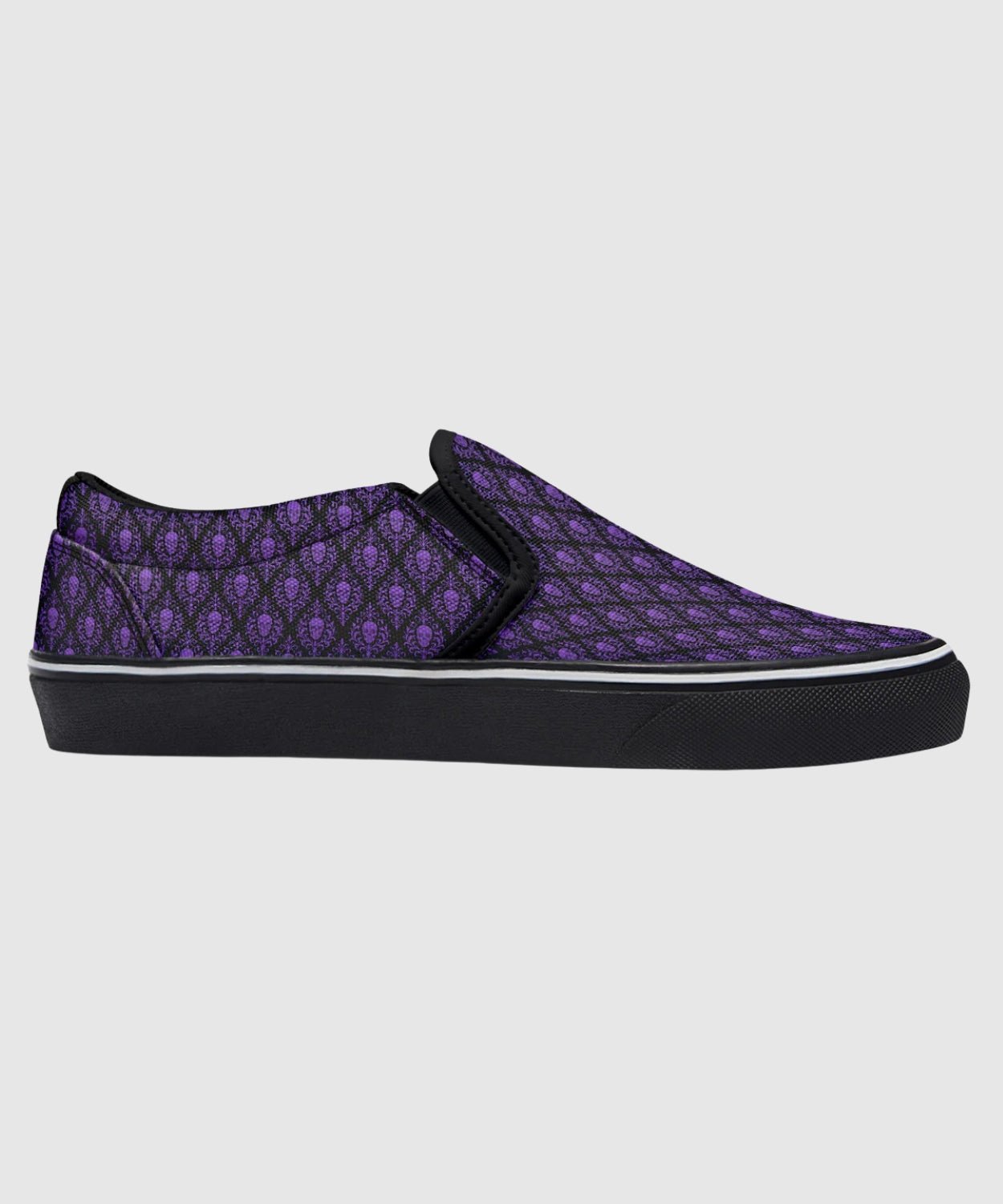 The Victorian Skull Damask Slip-On Shoes offer an easy, understated way to wear gothic patterns daily. The classic damask skull design works well with both casual and dressed-down alternative looks.