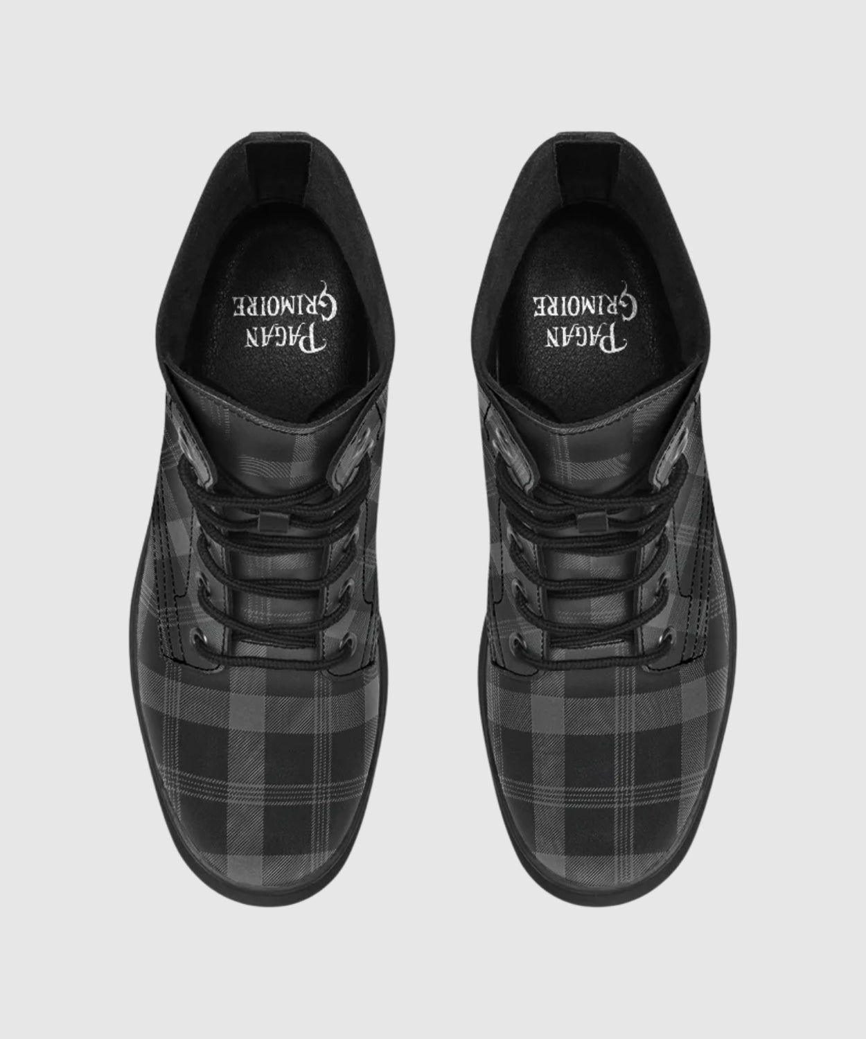 Black and Grey Plaid Boots - The Pagan Grimoire