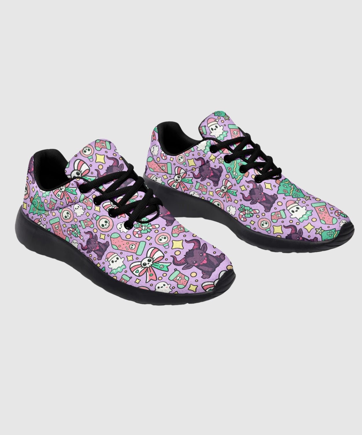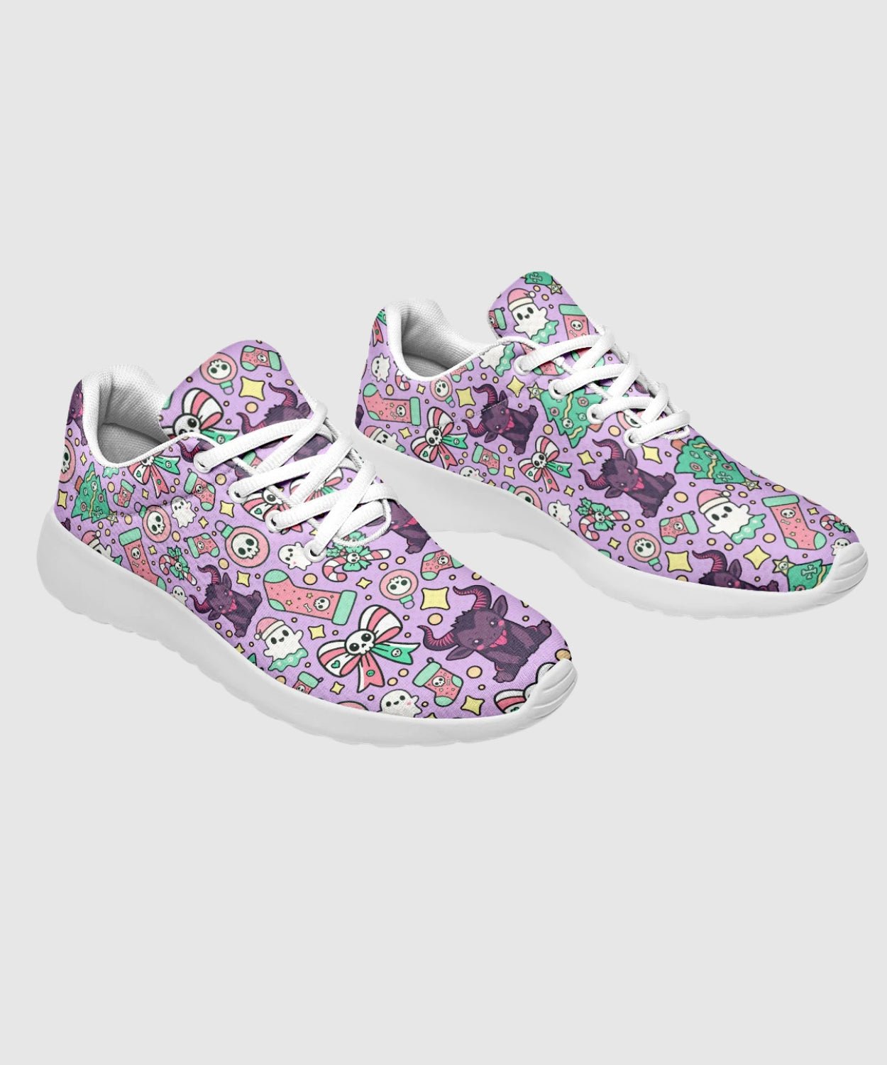 Lightweight, breathable, and unmistakably witchy—the Cute Krampus Sneakers reimagine Christmas with an adorably spooky Krampus, candy, and gothic motif.