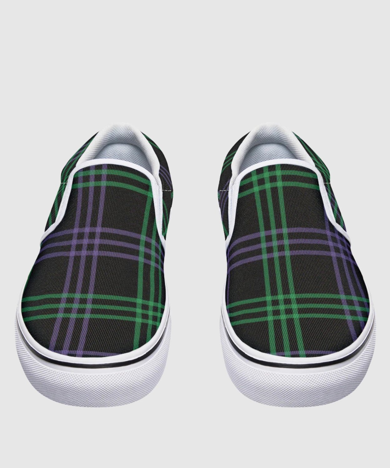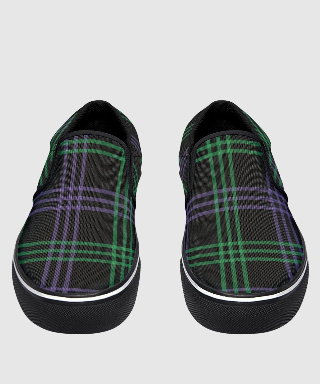 Green and Purple Plaid Slip Ons - The Pagan Grimoire