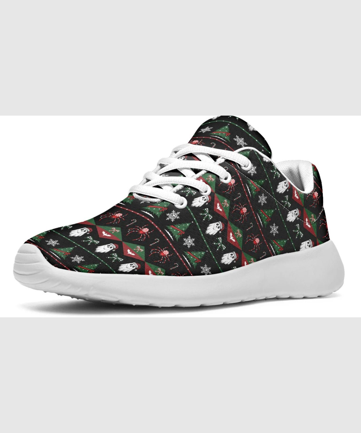 Add a little haunt to your holiday with Merry Gothmas Sneakers. Featuring ghosts, bats, and peppermint spiders, they’re festive, gothic, and endlessly wearable. These gothic Christmas shoes blend comfort and statement style—ideal for cozy winter strolls or year-round spooky fashion.